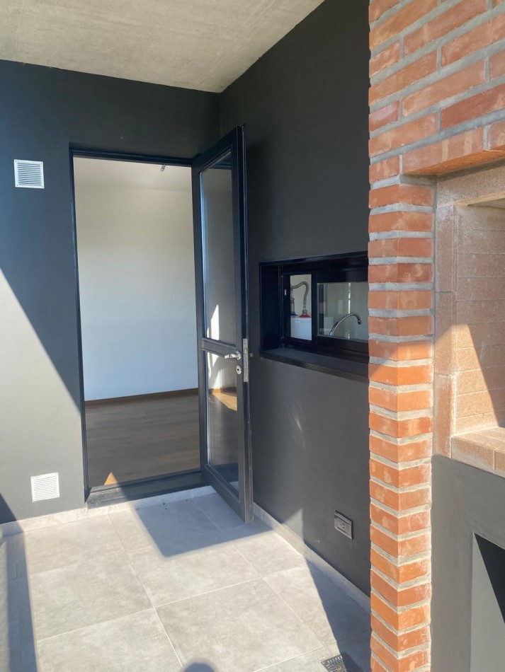 °Un balcón con parrillero para tus asados al aire libre .